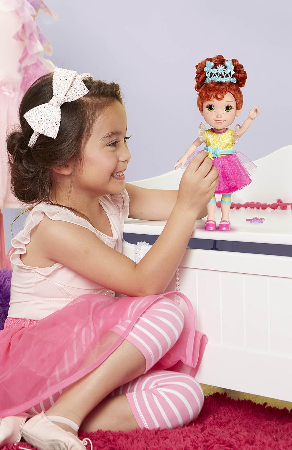 Nancy loves to be fancy in everything including her creative outfits. Now you can turn the ordinary into the extraordinary with the Classique make Nancy fancy doll in her signature outfit from the show. Use the mystery bag of fancy to decorate her outfit, or create your own magnifique design! recommended for ages 3+