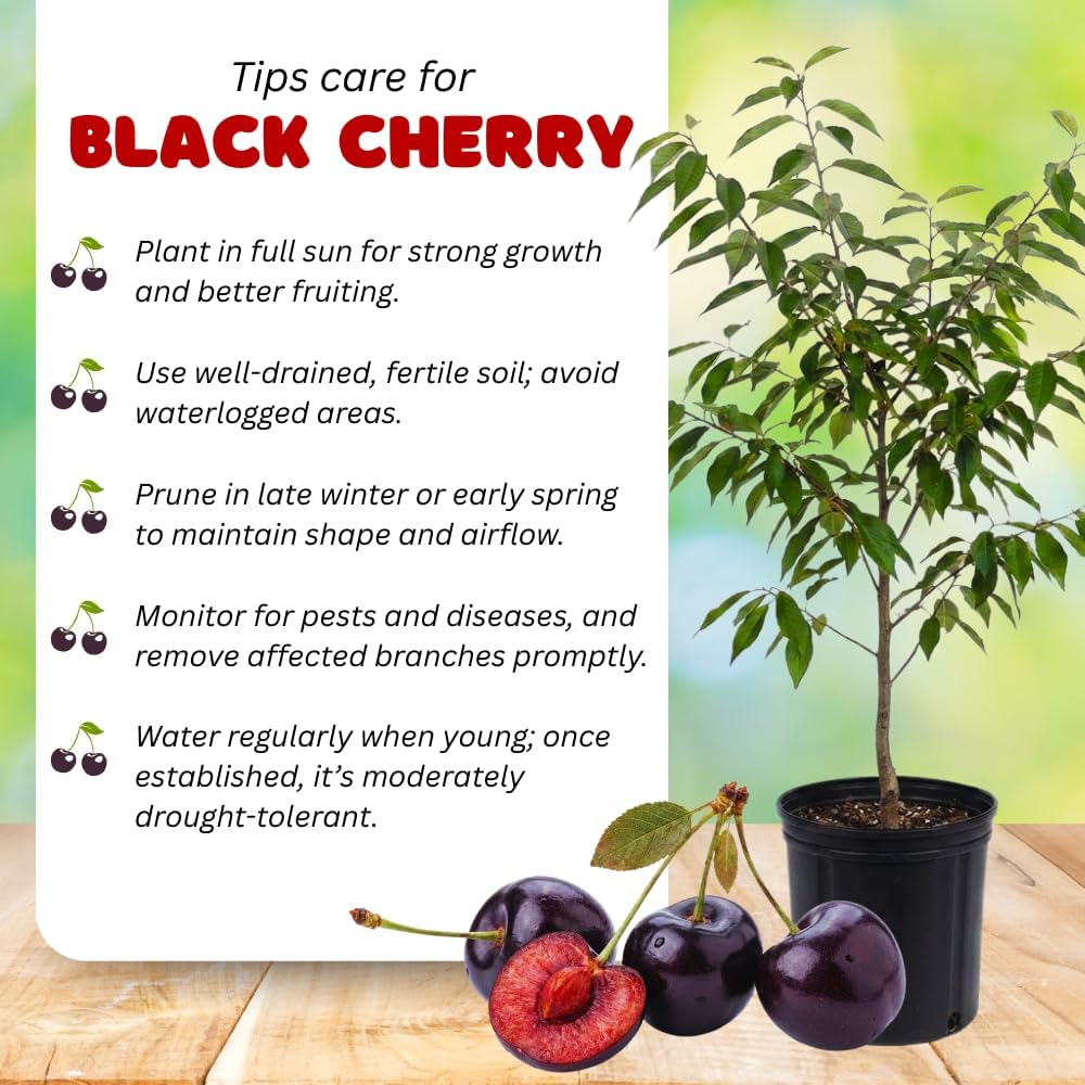 Set 2 Black Cherry Trees Live Plant, Sweet Cherry Plant Live, Wild Black Cherry Tree Plant from 1 Feet Tall