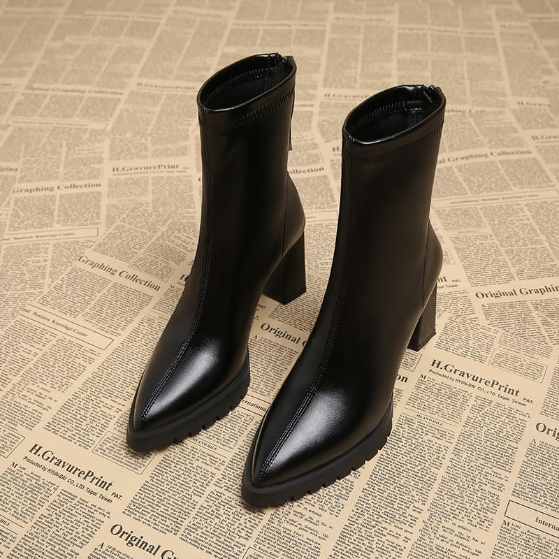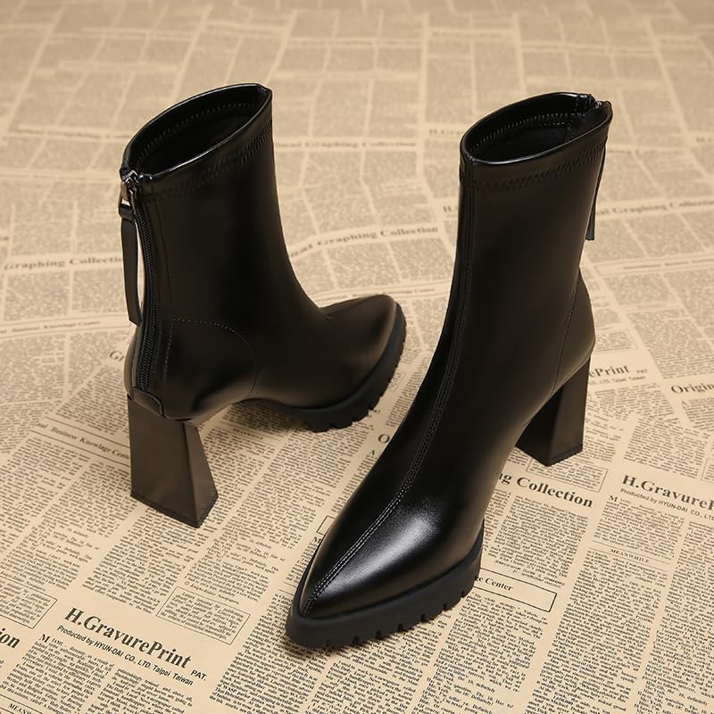 Spring and Autumn 2025 New Versatile Women Elegant Black Womens Boots Chunky Heel Ankle Boots Pointed Toe Women Boots Autumn and Winter Fashion Boots 303-2